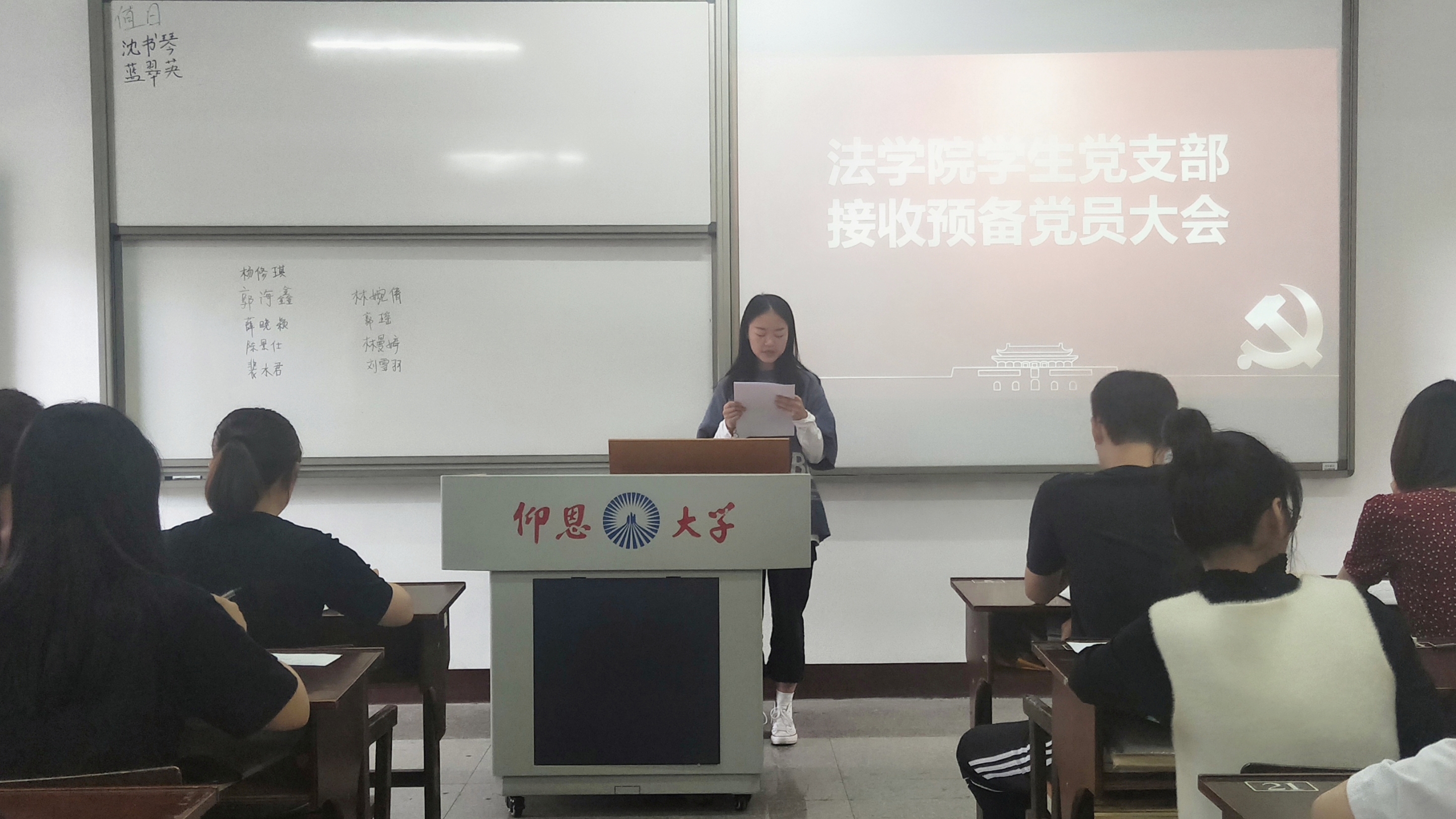 大会共分为八项议程,会议严格按照党组织发展预备党员的程序进行。大会伊始,9名发展对象逐一宣读《入党志愿书》,并向党组织汇报自身对党的认识、入党动机以及考察期内表现,并由入党介绍人介绍其培养考察情况。期间,与会党员对9名发展对象是否符合党员条件发表了意见。最后,经支部大会充分讨论,以无记名投票的方式,全票通过接收薛晓颖、杨修琪等9名同志为中共预备党员。