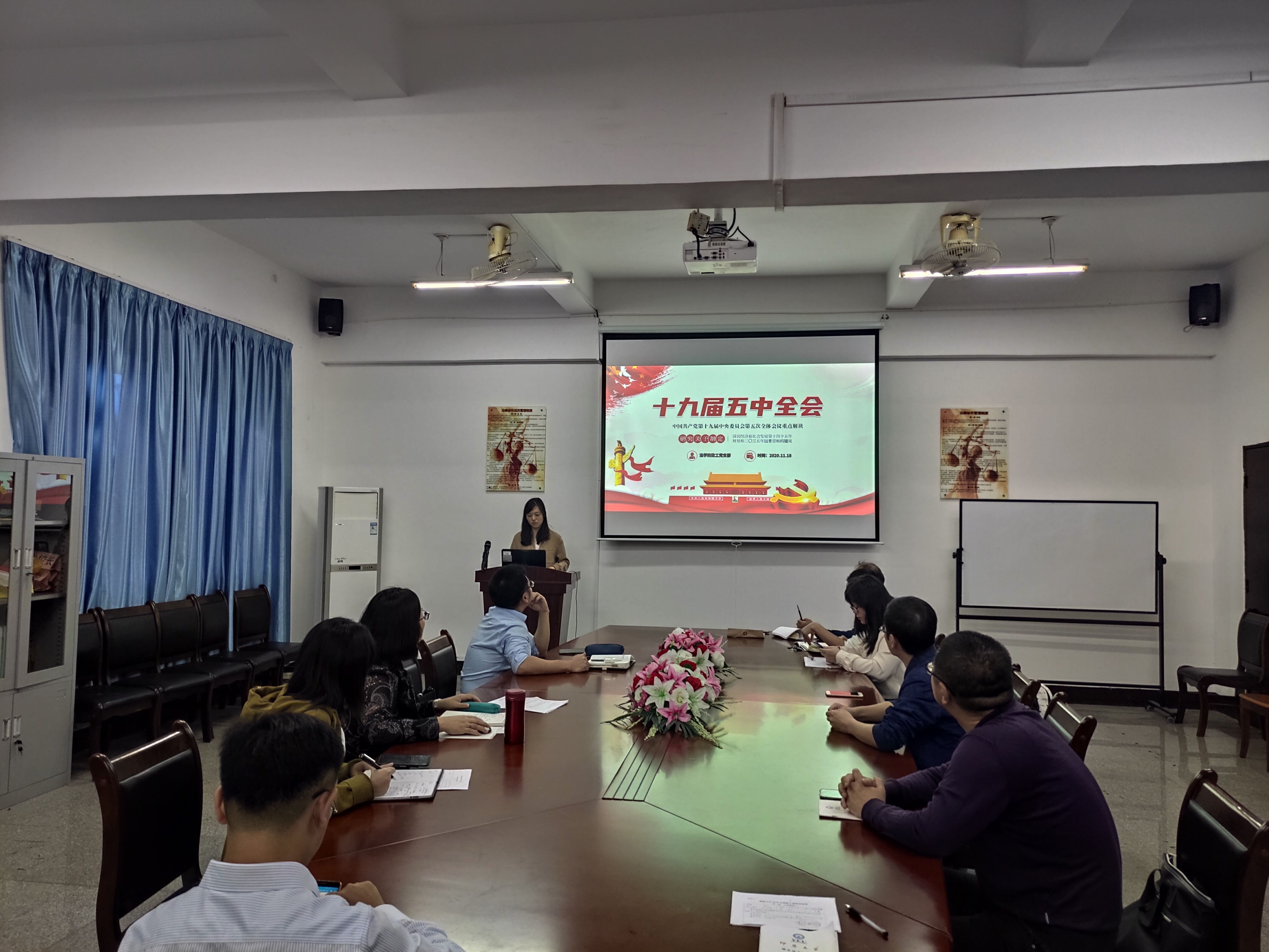 为深入学习十九届五中全会精神,11月18日下午,365英国上市教工党支部组织全体员工党员在仰恩大学第三校区普照教学楼法律诊所召开“十九届五中全会精神解读”主题学习会,会议由支部书记林媛主持。