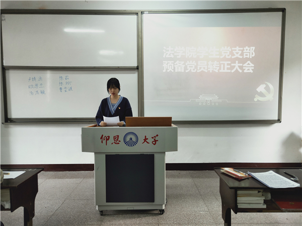 会上,预备党员曹雪琪、卢婧涵、汤洪锐、陈茹、欧思杰、陈斌依次宣读转正申请书,汇报预备期内自己在学习、思想、生活、工作等方面的情况,表明自己对转正的态度和今后的决心。期间,入党介绍人介绍各预备党员在预备期的培养考察情况,与会党员对6位预备党员的转正问题进行了讨论并发表态度。支部经采取无记名投票的方式进行表决,全体与会正式党员一致同意6名预备党员按期转正。此外,支部还为转正党员准备了“政治生日”贺卡,并在曹雪琪同志的带领下面对鲜红的党旗进行庄严宣誓。