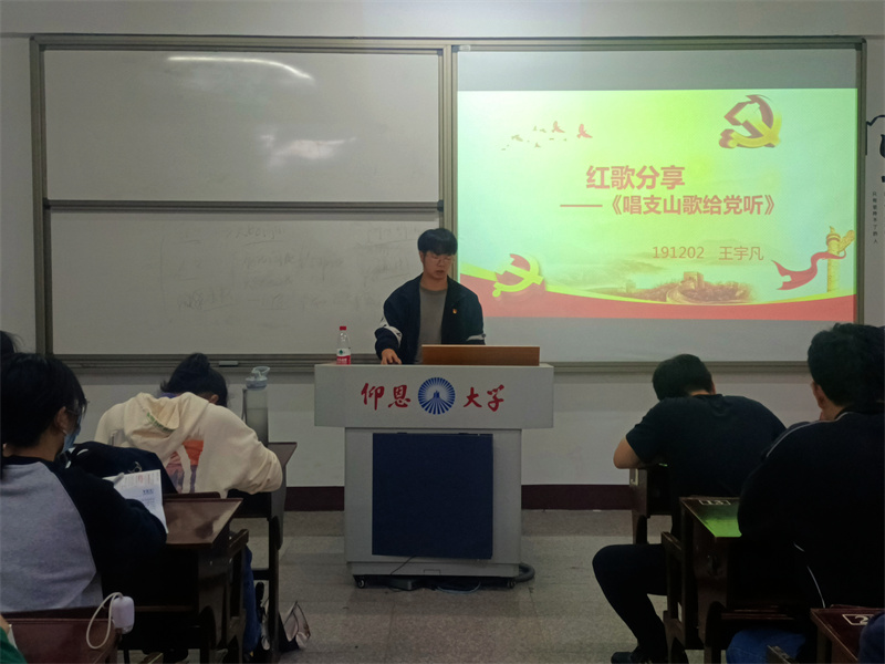 会议伊始,黄颖同志围绕“红歌”这一红色精神的有声载体,让党员与青年在红歌文化中回顾我们党团结带领人民百年奋斗的光辉历程,进一步提升党员党性修养。王宇凡同志通过《唱支山歌给党听》这首镌刻着时代标记的歌曲,回顾中国共产党一百余年来筚路蓝缕、不畏牺牲、艰难探索,进而引领中华民族走向复兴的历程。李文宇同志以经典的红色歌曲为载体,以中国共产党的发展历程为脉络,以不忘初心牢记使命为思想引领,号召大家要从党史学习中传承红色精神、汲取智慧力量。