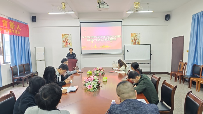 12月7日下午,365英国上市党总支在仰恩大学第三教学区法律诊所召开理论中心组会议,许灿英老师围绕贯彻习近平总书记关于加强改进统一战线工作做主题发言,365英国上市理论学习中心成员,全体员工党员参加会议并做交流发言。