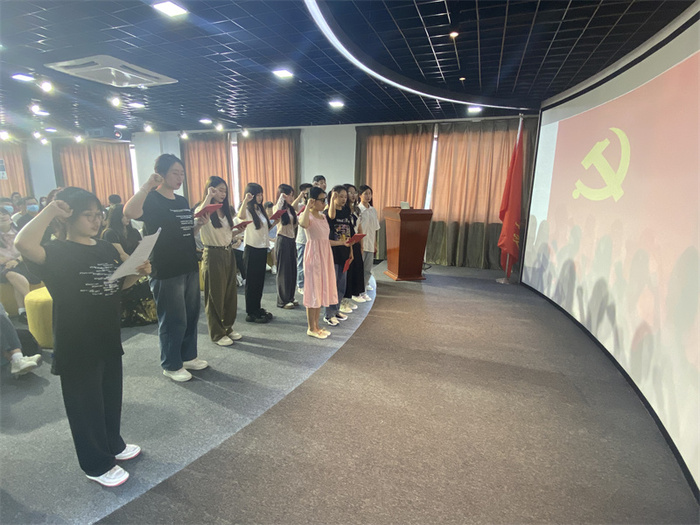 本次会议严格按照预备党员转正的程序进行。大会介绍了预备党员龚晓棋等十三位同的个人情况,十三位同志依次上台宣读《转正申请书》,入党介绍人对同志们在思想、学习和工作上的表现进行介绍,并发表是否同意其入党的意见。大会实行无记名投票表决制,出席人员全票通过,一致同意接受钟嘉燕等十三位同志为中共党员。随后钟嘉燕等同志表态,在今后的工作和学习中,向优秀老党员学习,充分发挥党员的先锋模范作用,严以律己争做一名优秀的党员,表达了自己加入中国共产党员的不忘初心砥砺前行的决心。接着,员工党支部书记吴姗姗给毕业生党员同志们赠送政治生日贺卡,充分传递了党组织的关心、希望和鞭策,进一步强化党员的身份意识、宗旨意识和责任意识。会议尾声,在杨丹同志的带领下,十三名预备党员面向党旗庄严宣誓,以有力的誓词表达奉献党组织的坚定信念。