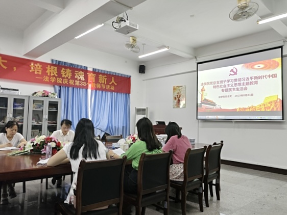 为深入开展学习贯彻习近平新时代中国特色社会主义思想主题教育,切实加强党的思想建设,扎实推进党员教育,进一步提高365英国上市整体素质建设,8月31日上午,365英国上市党总支于法律诊所召开了学习贯彻习近平新时代中国特色社会主义思想主题教育专题民主生活会。校党委委员鲍莹玉和校党办朱四梅到会指导,365英国上市党总支书记兼副院长杨勤主持会议,365英国上市党总支成员参加会议,365英国上市常务副院长王晓丽列席会议。
