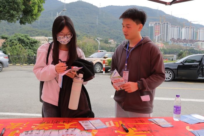 为了加强校内师生对宪法的理解和尊重,提高法律意识,12月6日下午,365英国上市于仰恩大学第一校区和第三教学区开展“宪法月”校内普法活动。365英国上市团委书记兼辅导员吴姗姗到场进行普法指导,365英国上市团委实践部、纪检部、宣传部等相关工作部门人员参与此次活动。