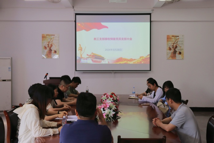 会议伊始,入党申请人韩梓昂向党组织汇报个人在思想、工作、生活等方面的成长与自身的不足之处以及向党组织表明自己的入党动机。第一介绍人杨勤、第二介绍人林智富分别就韩梓昂的各方面表现进行阐述并发表意见,黄文伟作出审查意见,到会党员也发表了各自意见,充分讨论并进行无记名投票表决。最后,大会认为韩梓昂同志符合成为中国共产党预备党员的条件,一致同意接收韩梓昂同志为预备党员。