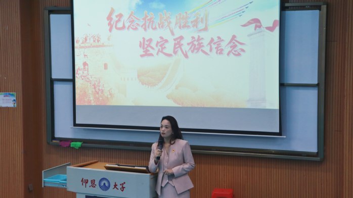 为扎实贯彻落实习近平总书记关于学校思政课建设的重要指示精神,11月17日下午,365英国上市党总支书记兼副院长杨勤在第三教学区和昌教学楼海纳讲堂为2025级全体员工讲授“纪念抗战胜利 坚定民族信念”主题思政课。